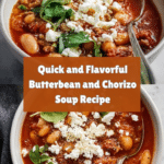 This 20-Minute Butterbean and Chorizo Soup is a hearty and flavorful dish combining the smoky richness of chorizo with creamy butterbeans, all simmered in a tangy tomato base and topped with crumbled feta and fresh watercress. Perfect for a quick, comforting meal, this soup blends simple ingredients to create a satisfying and nutritious bowl of goodness.
