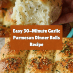 These 30-Minute Garlic Parmesan Dinner Rolls are soft, fluffy, and bursting with savory flavors. Perfect for a quick homemade bread option, they feature a garlic and parmesan topping that adds a deliciously rich touch. Ready in under an hour, these rolls are ideal for family dinners or special occasions.