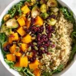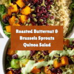 This Arugula Quinoa Salad is a vibrant and nutritious dish, combining nutty quinoa with roasted butternut squash and Brussels sprouts. A creamy lemon-tahini dressing and a mix of cranberries, pumpkin seeds, and cashews add wonderful texture and bright flavors perfect for any season.