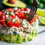 A refreshing and creamy Avocado Tuna Salad with fresh cilantro, lime juice, and zesty pico de gallo. Perfect as a light lunch or snack, this recipe combines wholesome ingredients in a no-cook preparation for a delicious and nutritious meal.