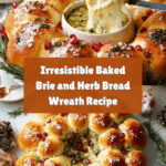 This Baked Brie and Bread Wreath is an elegant and impressive appetizer perfect for gatherings. Soft, fluffy bread rolls surround a warm wheel of creamy brie, enhanced with fresh herbs and a tangy herbed oil. It’s both delicious and visually stunning, sure to be the star of any party.