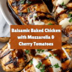 This Balsamic Baked Chicken Breast with Mozzarella Cheese is a flavorful and easy-to-make dish combining tender chicken breasts with a tangy balsamic glaze, fresh cherry tomatoes, and melted mozzarella. Perfect for a healthy weeknight dinner, it balances savory herbs, sweetness from honey, and the creamy texture of melted cheese for a delightful meal.