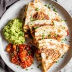 - Slice and Serve: Remove the quesadilla from heat and slice into triangles. Repeat the process with the remaining ingredients. Serve warm with sour cream, extra salsa, or guacamole as desired.