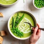 - Serve and Enjoy: Pour the creamy soup into bowls, garnish with the warm peas if using, and serve immediately for a wholesome, comforting meal.