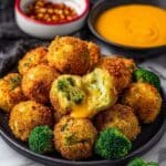 - Chill Balls: Place the shaped broccoli cheese balls on a plate and refrigerate them for at least 30 minutes to help them firm up before frying.