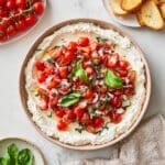 Keywords: bruschetta dip, tomato dip, feta cheese dip, appetizer, party dip, Italian appetizer