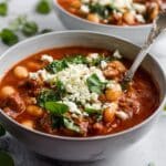 This hearty Butterbean and Chorizo Soup combines the rich, spicy flavors of chorizo with creamy butterbeans in a savory tomato broth. Enhanced with fresh thyme, crumbled feta, and peppery watercress, this comforting soup is perfect for a satisfying meal any day.