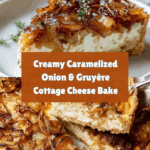 This Caramelized Onion and Gruyère Cottage Cheese Bake is a rich, savory custard-like dish featuring deeply caramelized onions, creamy cottage cheese, and melty Gruyère cheese. Slow-cooked onions impart a sweet and jammy depth, balanced by fresh thyme and a smooth, cheesy custard base. Baked to golden perfection, it makes a comforting vegetarian main or side that’s perfect for brunch or dinner.