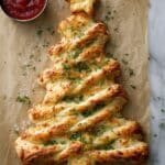 This Cheese Puff Pastry Christmas Tree is a festive and savory appetizer perfect for holiday gatherings. Layers of flaky puff pastry are filled with a flavorful garlic parsley butter and melted mozzarella cheese, then twisted into a stunning Christmas tree shape. Baked until golden and crispy, this easy-to-make dish is perfect for sharing and dipping with your favorite sauces.