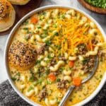 Keywords: cheeseburger soup, macaroni soup, cheeseburger macaroni, ground beef soup, cheddar soup, comfort food recipe