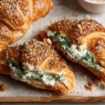These Cheesy Everything Spinach Croissants combine flaky, buttery croissants with a rich, creamy spinach and cheese filling. Topped with a honey glaze and sprinkled with everything but the bagel seasoning, they offer a perfect balance of savory and sweet flavors, ideal for a delicious breakfast or snack.