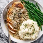 Keywords: chicken green beans creamy mushroom sauce Parmesan quick dinner skillet