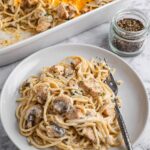 Chicken Tetrazzini is a comforting baked pasta dish featuring tender chicken in a creamy mushroom sauce topped with melted cheese and crispy breadcrumbs. This classic recipe is perfect for a cozy family dinner or an impressive weeknight meal.