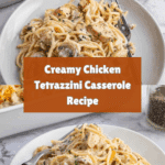 Chicken Tetrazzini is a creamy, comforting baked pasta dish featuring tender shredded chicken, mushrooms, and a rich, cheesy sauce. This classic casserole combines spaghetti or fettuccine with a flavorful cream sauce, topped with mozzarella, Parmesan, and crispy breadcrumbs for a satisfying meal perfect for family dinners.