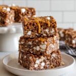 These Chocolate Churro Rice Krispie Treats with Caramel Drizzle offer a delightful twist on a beloved classic. Combining cocoa-infused cereal, cinnamon sugar, and gooey marshmallows, they’re finished with a rich caramel drizzle for an irresistible snack or dessert.