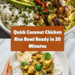This Coconut Chicken Rice Bowl brings a tropical twist to your weeknight dinner with creamy coconut milk and bright lime flavors. Ready in just 20 minutes, it’s a quick, satisfying meal that combines tender chicken and fragrant rice for delicious comfort.