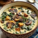 This comforting wild mushroom, caramelized onion, and kale soup is a warm and nourishing dish perfect for any season. Its rich flavors come from caramelized onions, sautéed mushrooms, and a touch of creamy coconut milk, making it both hearty and satisfying.