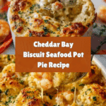 This Cheddar Bay Biscuit Seafood Pot Pie combines a creamy, seasoned seafood filling with a decadent cheddar biscuit topping, delivering a comforting coastal-inspired meal perfect for a cozy dinner.