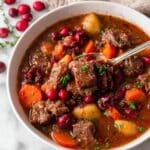 A hearty and flavorful Cranberry Apple Beef Stew combining tender beef chuck, tart cranberries, and crisp Granny Smith apples in a savory broth with vegetables and warm spices. Perfect for cozy dinners, this stew can be made on the stovetop, in the oven, or using an Instant Pot for convenience.