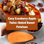 These Cranberry Apple Twice-Baked Sweet Potatoes combine the natural sweetness of roasted sweet potatoes with a warm, spiced filling of sautéed apples, dried cranberries, pecans, and aromatic spices. Perfect as a cozy side dish or a comforting vegetarian meal, this recipe is easy to prepare with simple ingredients and oven roasting techniques that bring out vibrant fall flavors.