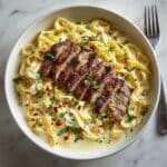 Keywords: creamy steak pasta, garlic pasta, steak recipes, creamy pasta sauce, parmesan pasta, easy steak dinner