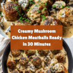 These Creamy Mushroom Chicken Meatballs are a quick and delicious meal perfect for weeknights. Tender chicken meatballs are seared to golden perfection, then simmered in a rich and savory creamy mushroom sauce made with garlic, Parmesan, and fresh herbs. Ready in just 30 minutes, this comforting dish pairs beautifully with pasta, rice, or crusty bread.