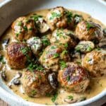 Creamy Mushroom Chicken Meatballs are a quick and flavorful meal ready in just 30 minutes. Tender chicken meatballs simmered in a rich, creamy mushroom sauce make this dish perfect for a comforting weeknight dinner.