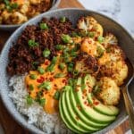 This Crispy Chile Ground Beef and Cauliflower Protein Bowl is a flavorful, high-protein meal perfect for anyone seeking a quick yet satisfying dish. Combining warm spices, crispy beef, and vibrant veggies, it’s a colorful bowl that’s both nourishing and delicious.