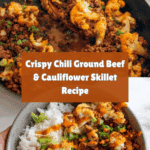 This Crispy Chili Ground Beef and Cauliflower Skillet is a flavorful, quick, and healthy dish that combines tender cauliflower florets with savory, spicy ground beef in a tangy chili sauce. Perfect for a weeknight dinner, this recipe offers a satisfying balance of textures and bold flavors, topped with fresh scallions and easily customizable with your favorite garnishes.