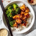 - Assemble Bowls: Place cooked rice as the base in serving bowls, add cooked broccoli, then top with the orange salmon. Drizzle with the remaining sauce and serve immediately.