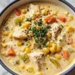 Keywords: crockpot chowder, chicken corn chowder, slow cooker soup, creamy chicken soup, comfort food, easy crockpot recipes, hearty soup, slow cooked chowder