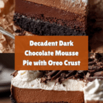 This Dark Chocolate Mousse Pie features a rich and creamy chocolate mousse atop a crunchy Oreo cookie crust, finished with a smooth dark chocolate ganache and homemade whipped cream. Perfect for chocolate lovers looking for an elegant yet approachable dessert.