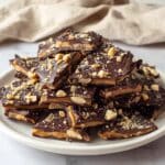 - Step 5: Sprinkle the chopped peanuts and flaky sea salt evenly over the chocolate. Refrigerate or freeze for at least 30 minutes to set.