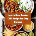 This Easy Slow Cooker Chili recipe is a hearty, flavorful, and comforting dish perfect for any day of the week. Packed with ground beef, a variety of beans, vegetables, and bold spices, it simmers slowly to develop deep flavors. The chili is topped with classic garnishes like shredded cheese, sour cream, cilantro, and green onions, and pairs wonderfully with jalapeño cheddar cornbread and tortilla chips.