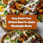 This Easy Street Corn Chicken Bowl is a vibrant, flavorful dish perfect for quick weeknight dinners. Combining juicy, spiced chicken thighs with a creamy, tangy corn topping served over rice, it’s both satisfying and simple to prepare.