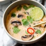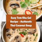 This Easy Tom Kha Gai recipe is a classic Thai coconut soup that perfectly balances creamy coconut, fresh lime, spicy chili, and aromatic herbs. Featuring tender chicken breast and mushrooms in a rich broth infused with lemongrass, galangal, and red curry paste, this comforting soup is simple to prepare and packed with authentic flavors.