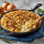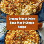 This French Onion Soup Mac & Cheese combines the rich, caramelized flavors of traditional French onion soup with creamy, gooey mac and cheese. Featuring a velvety cheese sauce made from Gruyère, sharp cheddar, and mozzarella, topped with Parmesan breadcrumbs and baked to golden perfection, this comforting dish delivers a perfect balance of savory depth and creamy indulgence.