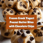 Delight in these Frozen Greek Yogurt Peanut Butter Bites with Chocolate Chips, a creamy, protein-packed snack that combines the rich flavors of peanut butter and chocolate with the tangy smoothness of Greek yogurt. Perfect for a cool, satisfying treat any time of day.