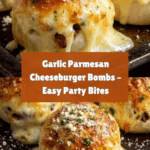 These Garlic Parmesan Cheeseburger Bombs are a delicious and easy-to-make appetizer or snack featuring ground beef cooked with garlic, mixed with Parmesan and cheddar cheese, and wrapped in flaky biscuit dough. Baked to golden perfection and topped with melted butter and fresh parsley, they are perfect for parties or a savory treat.