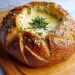 This Gooey Tear & Share Cheesy Bread is a delightful and fun appetizer perfect for parties and cozy gatherings. Featuring creamy Camembert and tangy goat cheese melted inside a crusty round loaf of Italian or sourdough bread, this recipe creates a warm, cheesy dip right in the bread itself. Infused with fragrant garlic and rosemary oil and topped with sea salt flakes, it’s easy to prepare, irresistibly gooey, and great for sharing with family and friends.