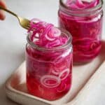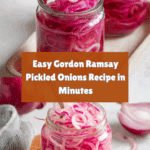 Gordon Ramsay’s Pickled Onions recipe features thinly sliced red onions preserved in a tangy and sweet brine made from white vinegar, water, cane sugar, and sea salt. This easy pickling method creates crisp, flavorful onions that are perfect as a condiment or addition to salads, sandwiches, and many dishes.
