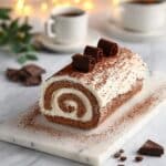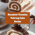 This Gourmet Tiramisu Yule Log Cake combines the classic flavors of tiramisu with the festive charm of a yule log. Light espresso sponge cake is filled with a creamy mascarpone filling and dusted with cocoa powder for a rich, elegant dessert perfect for holiday celebrations.