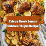 Keywords: Greek lemon chicken, baked chicken thighs, lemon garlic chicken, Mediterranean chicken recipe, easy dinner, marinated chicken, crispy chicken skin