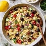 Keywords: Greek pasta salad, orzo salad, Mediterranean salad, feta cheese salad, summer salad, healthy pasta salad