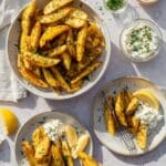These Greek Potatoes with Lemon, Garlic, and Parmesan are a flavorful and comforting side dish. Tender wedges of baking potatoes are seasoned with a fragrant blend of paprika, rosemary, oregano, and garlic, then baked in a tangy lemon and broth mixture. Topped with a crispy Parmesan crust and fresh parsley, this recipe brings a rustic Mediterranean flair to your table, perfect for pairing with grilled meats or enjoying on their own.
