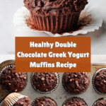 These Healthy Double Chocolate Greek Yogurt Muffins combine the richness of cocoa and dark chocolate chips with the moistness of Greek yogurt and unsweetened applesauce. Made with whole wheat flour and naturally sweetened with pure maple syrup, these muffins offer a deliciously indulgent yet nutritious treat perfect for breakfast or a snack.