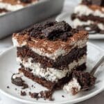 - Garnish and Serve: Before serving, dust the top evenly with unsweetened cocoa powder using a sieve. Finish by crushing Oreo Thins and sprinkling them over the dessert for added texture and flavor.