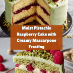 Keywords: pistachio cake, raspberry cake, layered cake, mascarpone frosting, nutty cake, berry filling, pistachio dessert