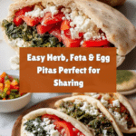 This Herb, Feta and Egg Pitas recipe is a flavorful and satisfying dish perfect for feeding a crowd. Combining fresh herbs, crumbly feta, and tender baked eggs, these pitas make a great brunch or light dinner option. The addition of kale and tangy yogurt creates a delicious balance of textures and taste.