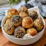 These High-Protein Bagel Bites are a delicious, gluten-free snack packed with protein. Made with a blend of gluten-free flour, protein powder, and Greek yogurt, each bite is filled with creamy cream cheese and topped with Everything But The Bagel seasoning. Quick and easy to prepare, they’re perfectly air fried to a golden brown and warm, making them a nutritious and satisfying treat any time of day.